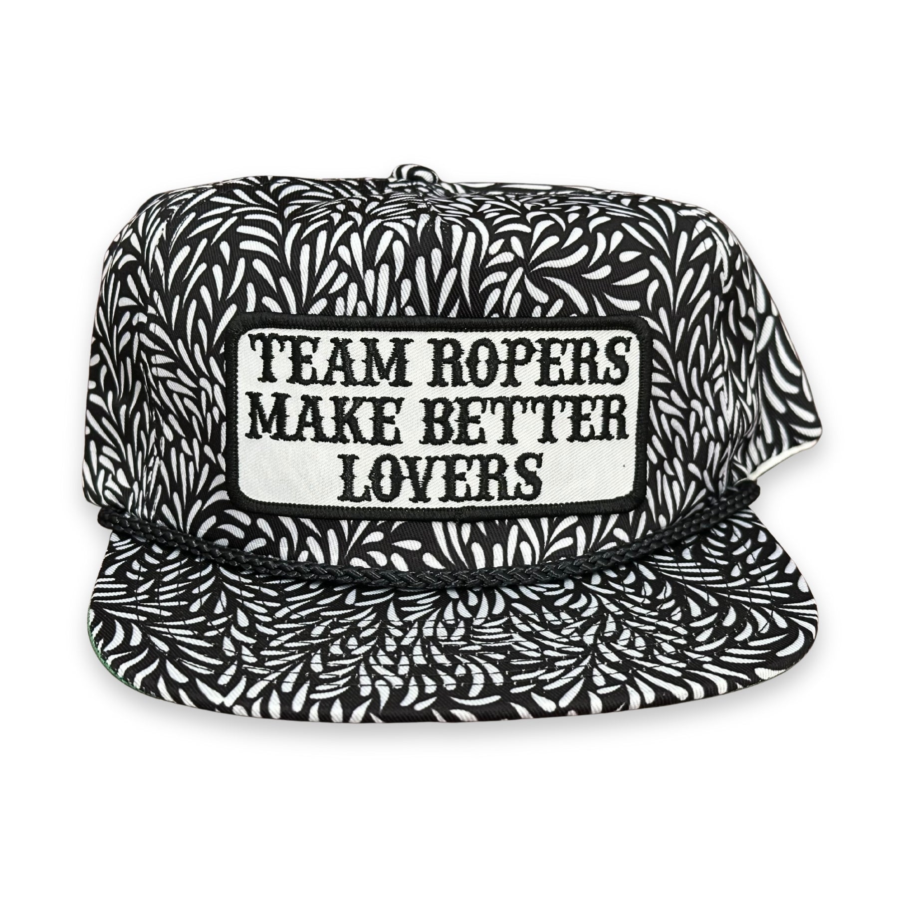 CA white and black leaf, snapback hat featuring our "BLKW Team Ropers BL" patch.