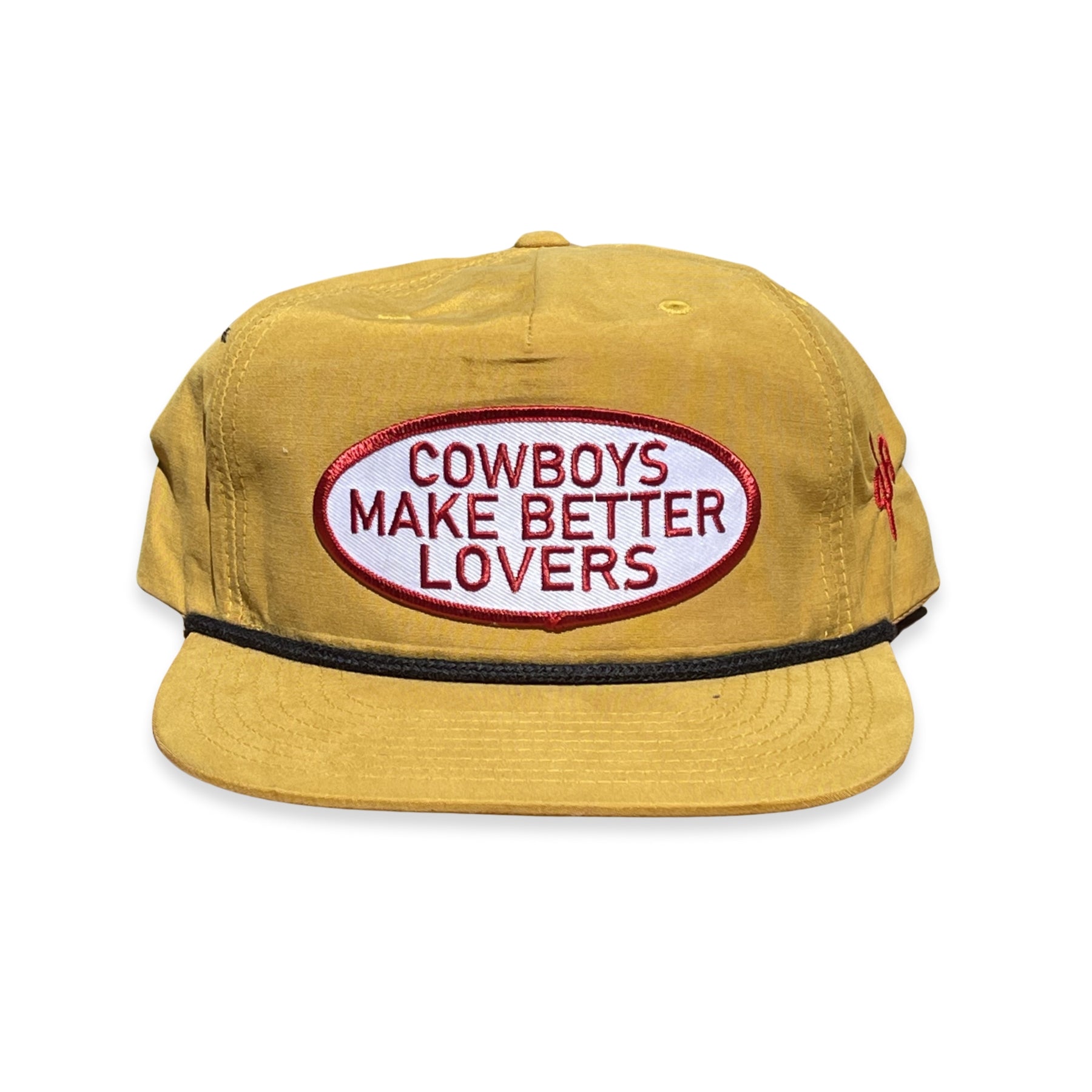 Cactus Alley 256 style snapback cap in biscuit with black rope featuring our "Better Lovers" patch!