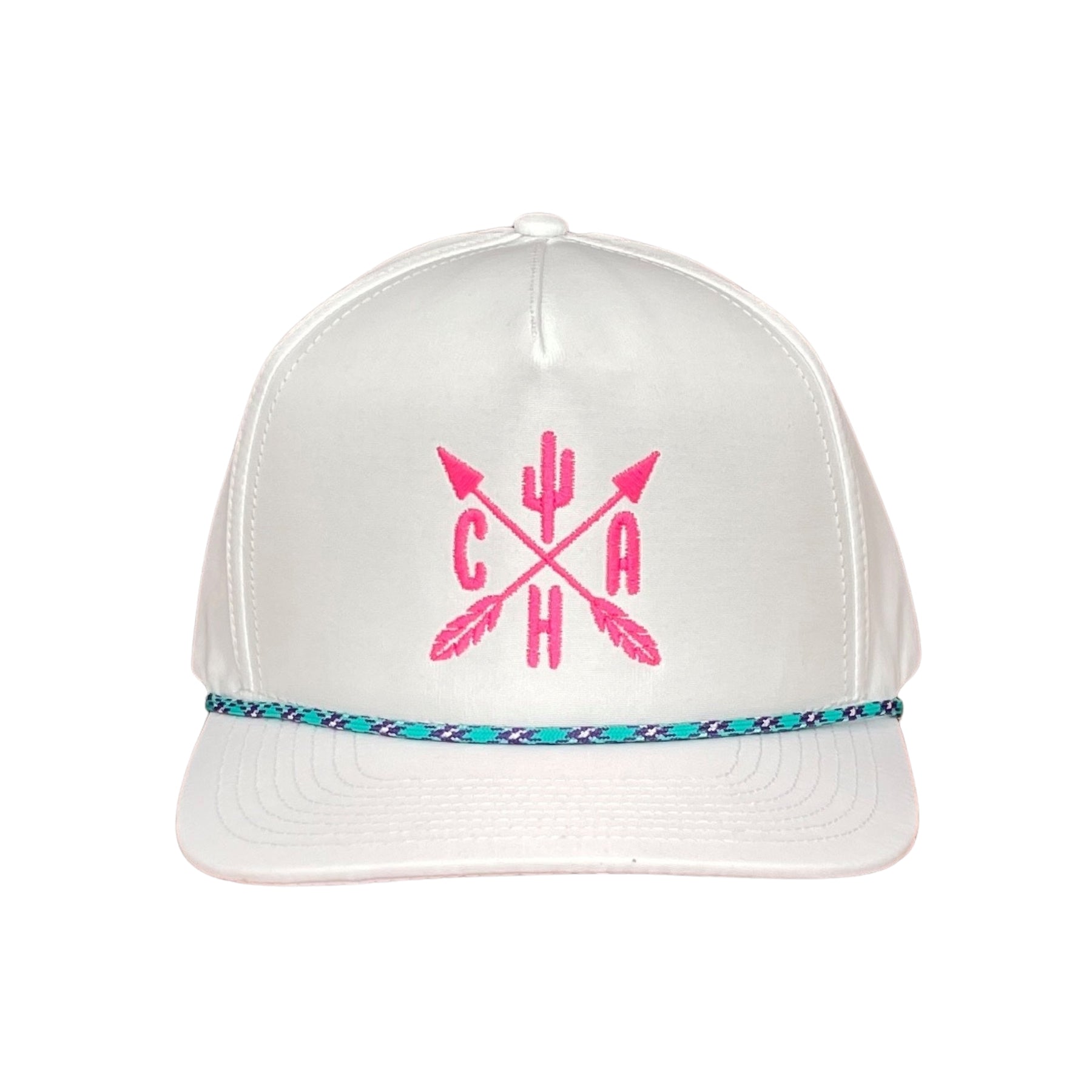 "Gravestone in Pink" - CA White/Purple, Turquoise Rope, Snapback Cap (WESA JAN 2024)