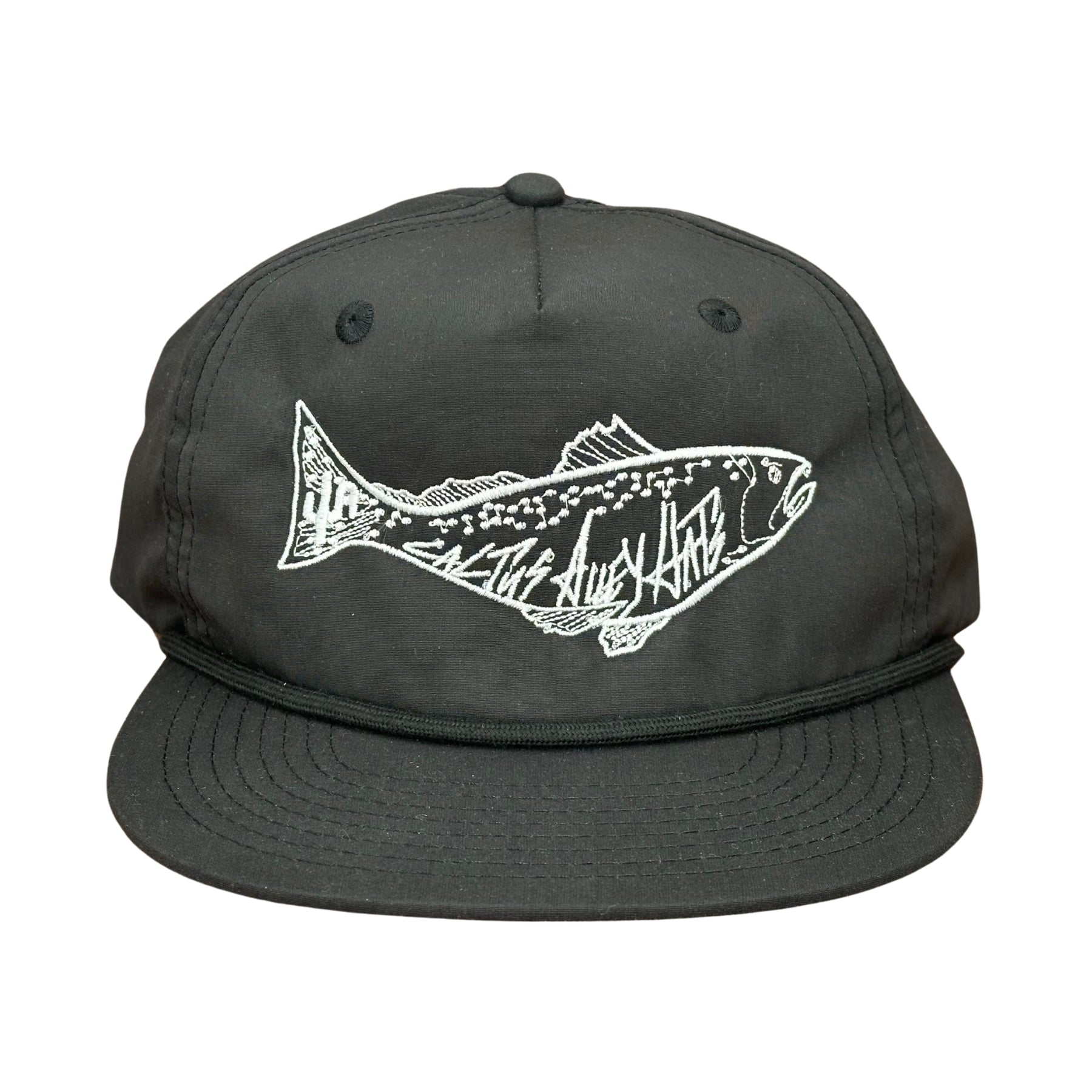 "Saltwater" - CA256 Black/ Black Rope, Snapback Cap- White Stitch (WESA JAN 2024)