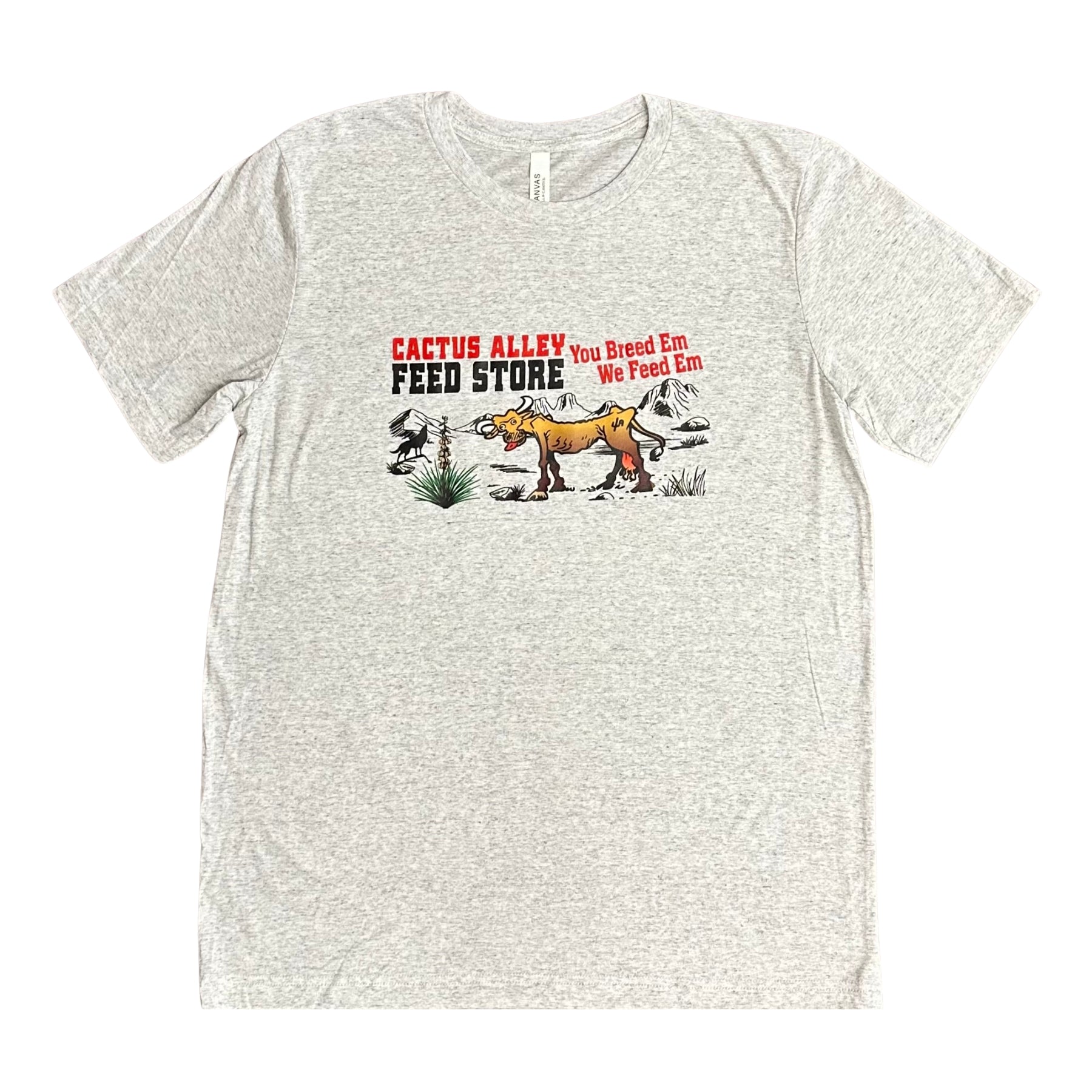 "Feed Store" Design Cactus Alley Hat Co White Fleck T-shirt