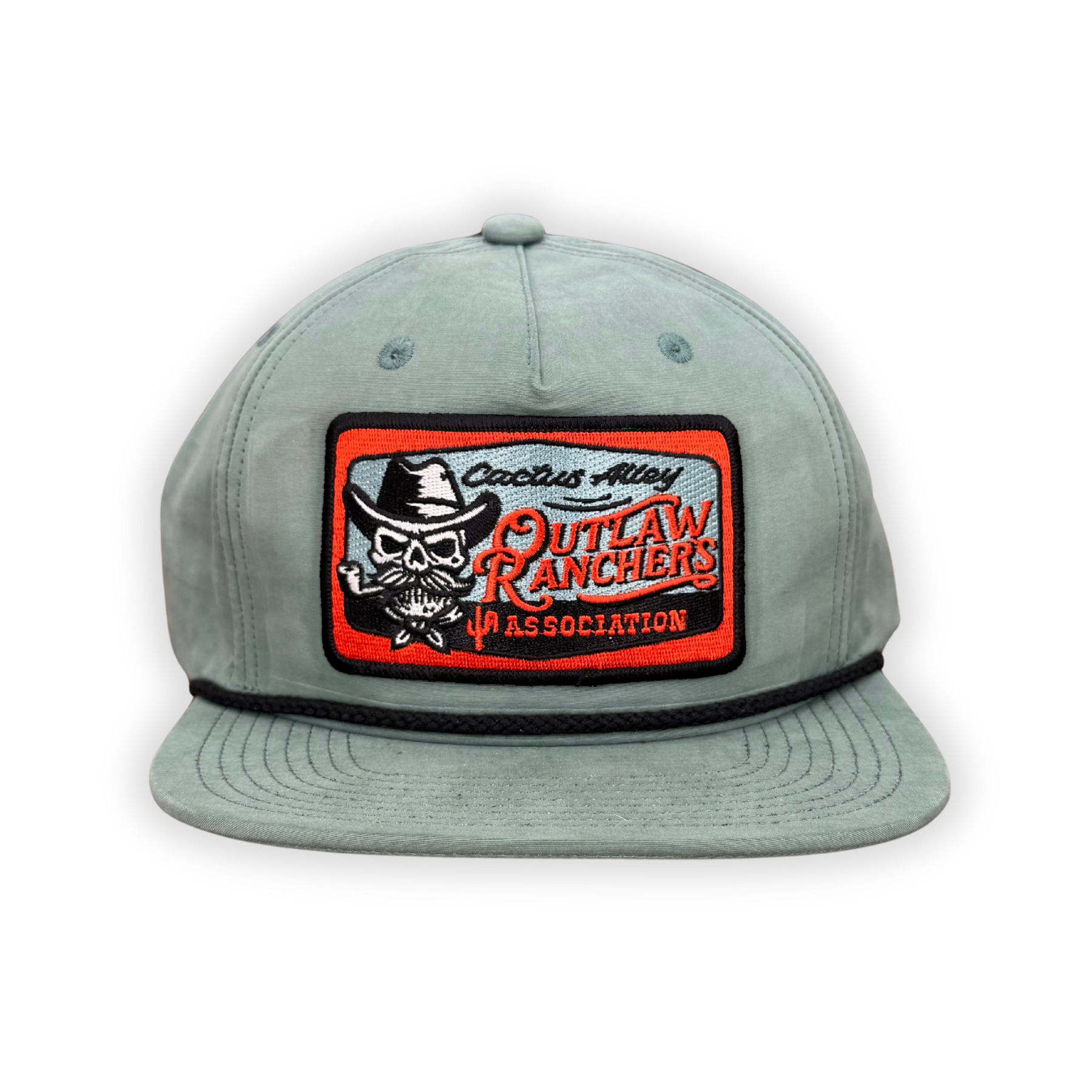 CA 256 style, snapback cap in black with black rope featuring our "Orange Rancher" patch!